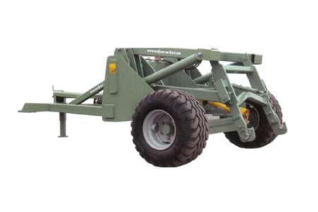 Прицепное устройство представляет собой машину на опорных колесах, состоящую из центрального бруса, шарнирно связанного параллелограмма, гидроцилиндров и навески, повторяющей навеску трактора.