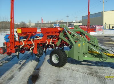 Прицепное устройство представляет собой машину на опорных колесах, состоящую из центрального бруса, шарнирно связанного параллелограмма, гидроцилиндров и навески, повторяющей навеску трактора. Предназначено для агрегатирования навесных сеялок с тракторами 1,4...2,0 класса тяги (типа МТЗ-82).